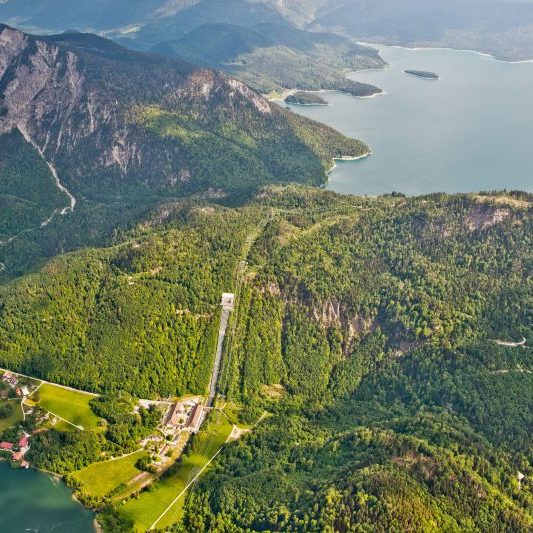 Direkt am Walchensee-Kraftwerk, umgeben von der atemberaubenden Natur der bayerischen Alpen.